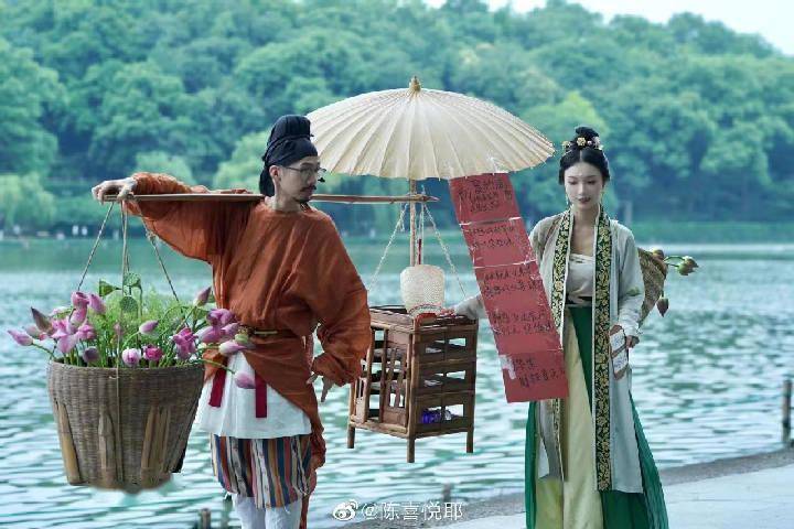 “西湖送花郎”走红后,货郎一青和送花姑娘陈喜悦不仅前往德寿宫等地送荷花,还一同参加了多项文旅宣传活动,将传统服饰之美带去了更多地方,成为代表浙江的一张名片。