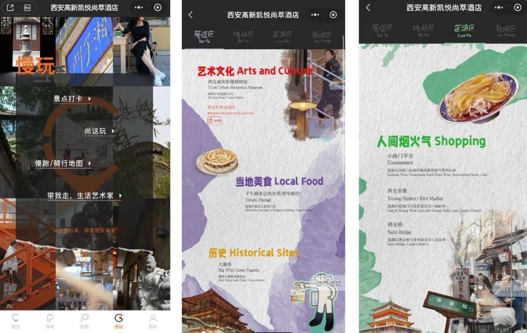 是的,入住西安高新凯悦尚萃酒店,只要打开酒店的小程序,就能在其【慢玩】板块的指引下,完成小众且有趣的本地旅行打卡,将当地美食、艺术文化和历史要素全部囊括。妥妥地符合了当代年轻人出行的三要素:灵活性、自主权和探索性。